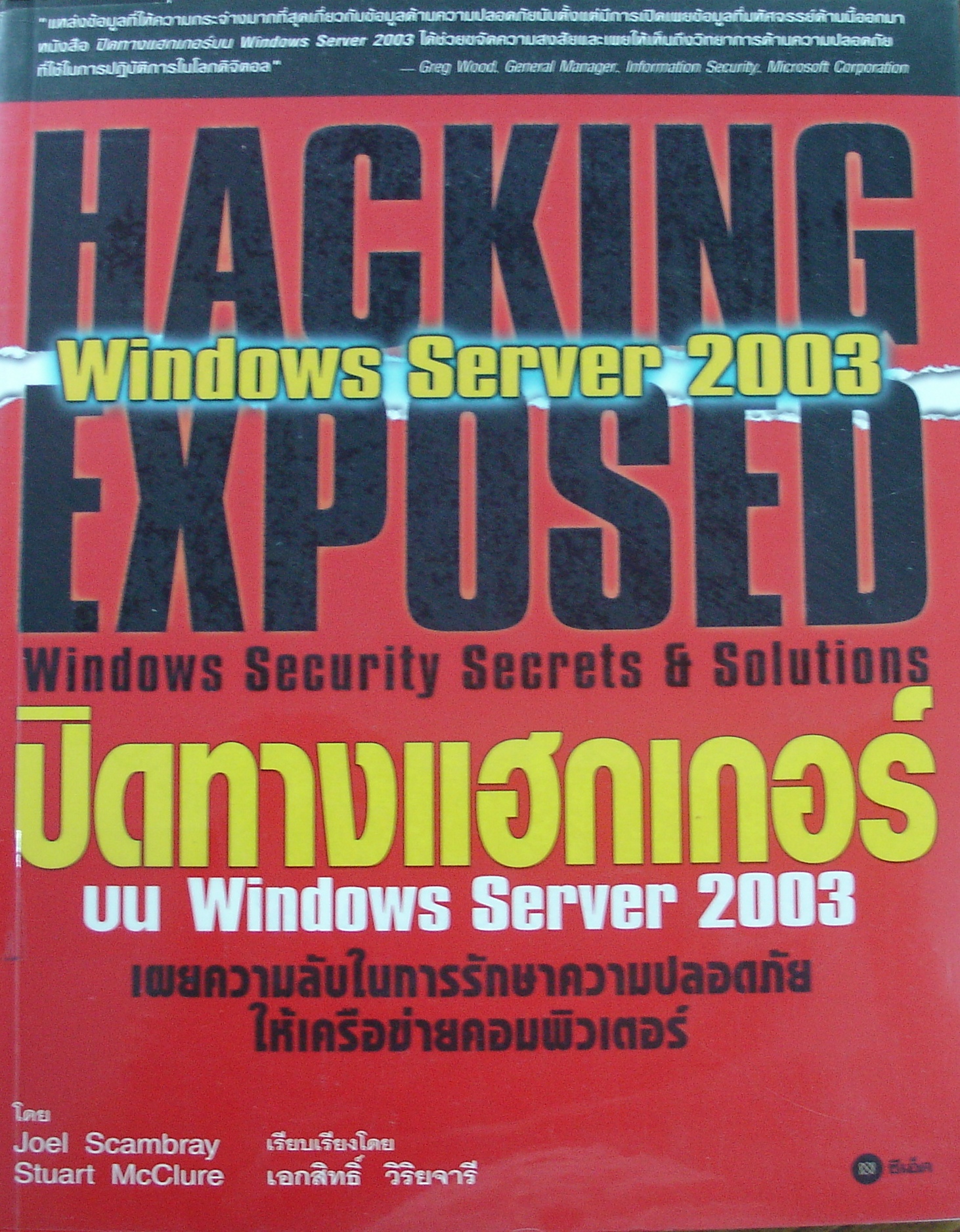 ปิดทางแฮกเกอร์บน Windows Server 2003 / โจเอล สแคเบรย์ และแม็คคลู เขียน, เอกสิทธิ์ วิริยจารี แปล | | ISBN |
