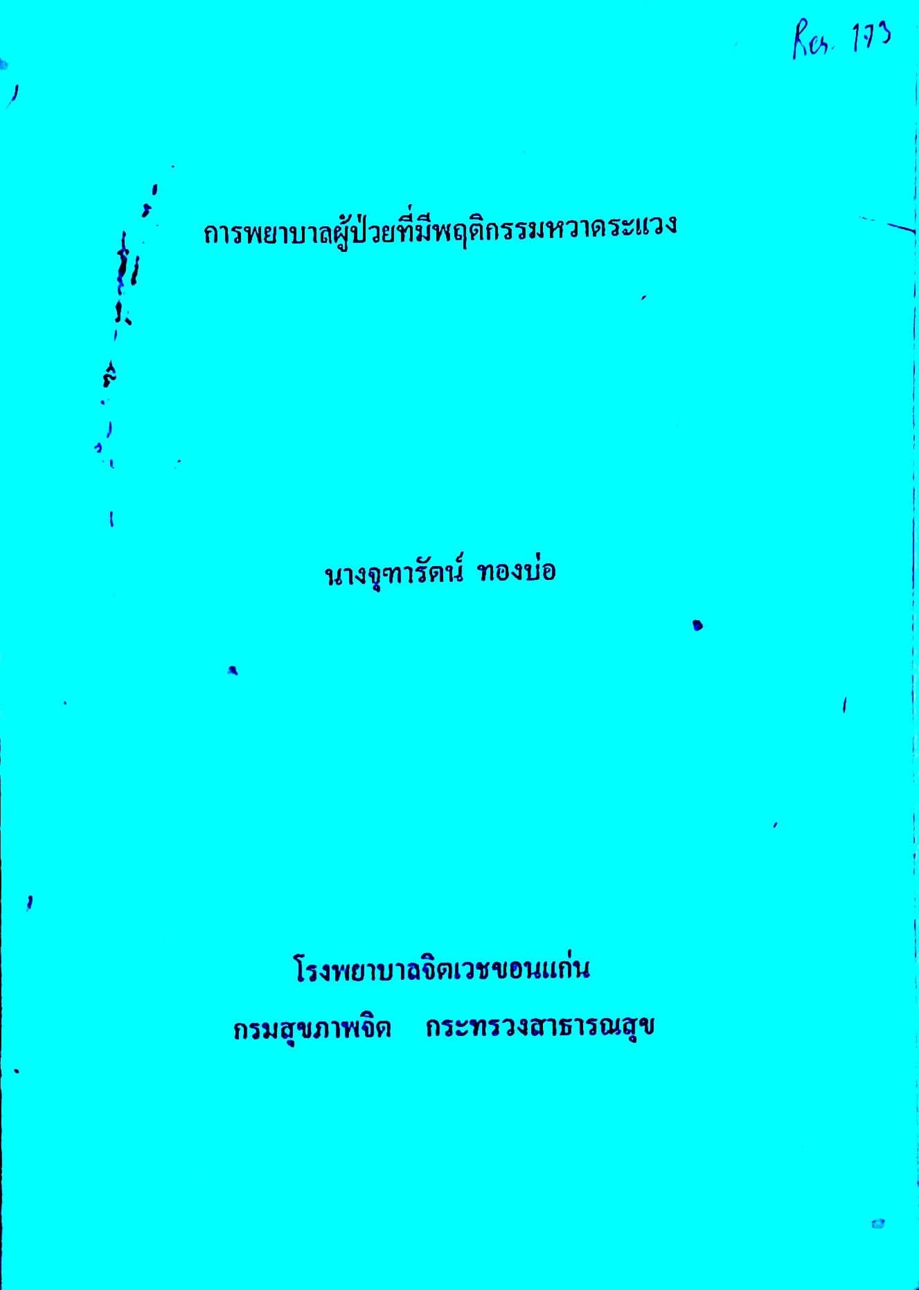 การพยาบาลผู้ป่วยที่มีพฤติกรรมหวาดระแวง/ จุฑารัตน์ ทองบ่อ