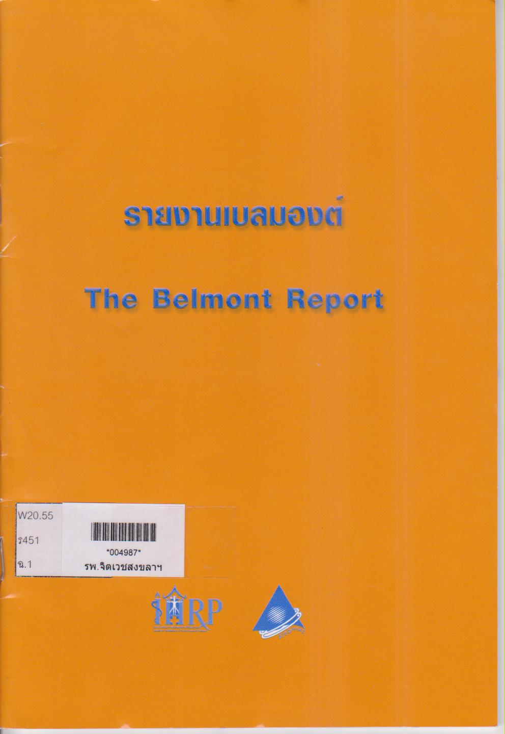 รายงานเบลมองต์ = the belmont report แปลโดย วิชัย โชควิวัฒน และทิพิชา โปษยานนท์