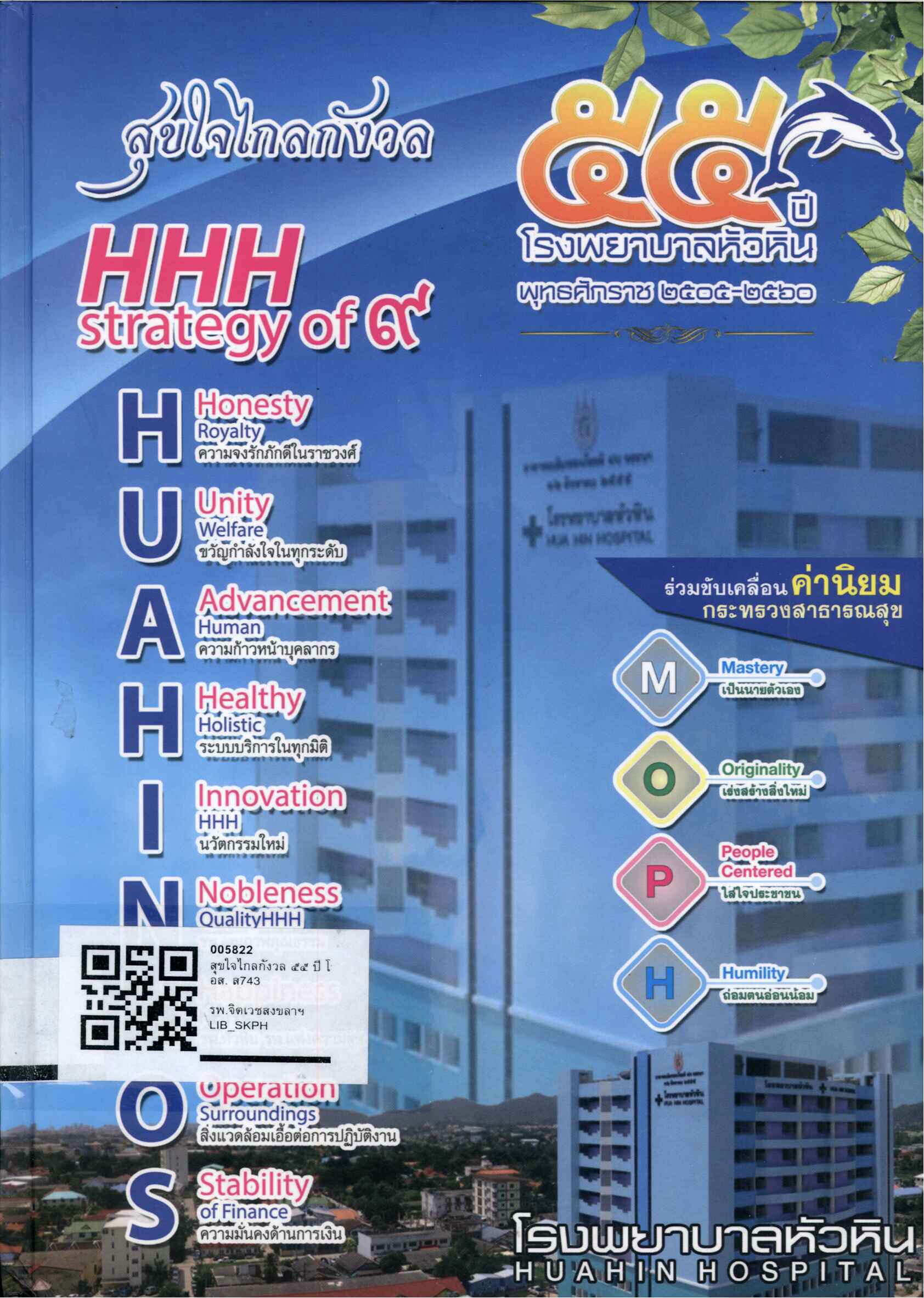 สุขใจไกลกังวล ๕๕ ปี โรงพยาบาลหัวหิน พุทธศักราช ๒๕๐๕-๒๕๖๐/โรงพยาบาลหัวหิน | | พิมพ์ลักษณ์ |