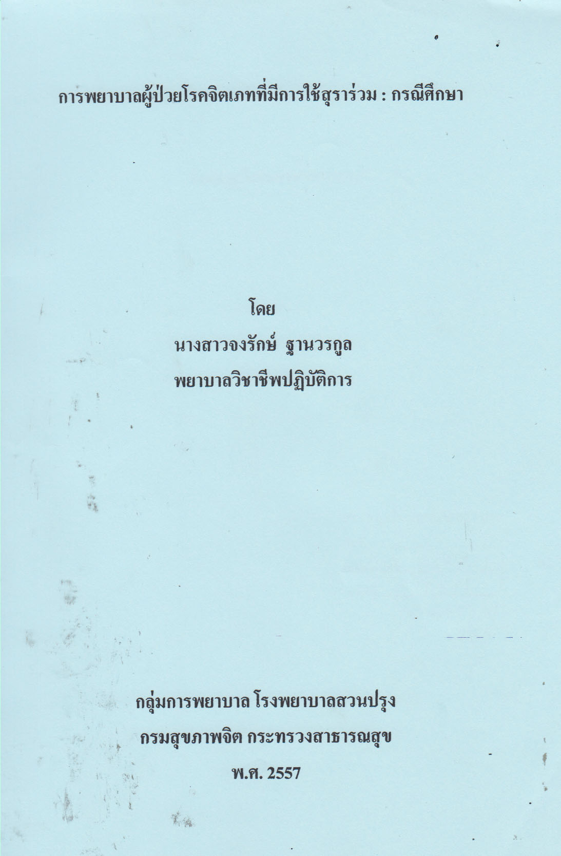 พิมพ์ลักษณ์  เชียงใหม่ : กลุ่มการพยาบาล โรงพยาบาลสวนปรุง, 2557