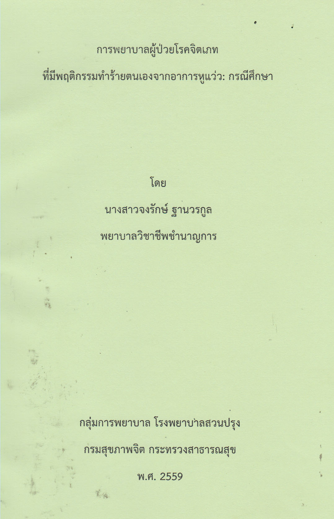 เชียงใหม่ : กลุ่มการพยาบาล โรงพยาบาลสวนปรุง, 2559 |