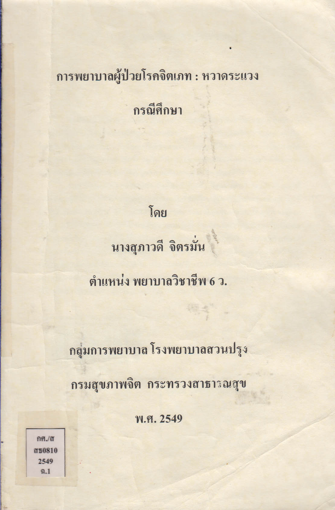 หัวเรื่อง [การพยาบาลจิตเวชศาสตร์--กรณีศึกษา]