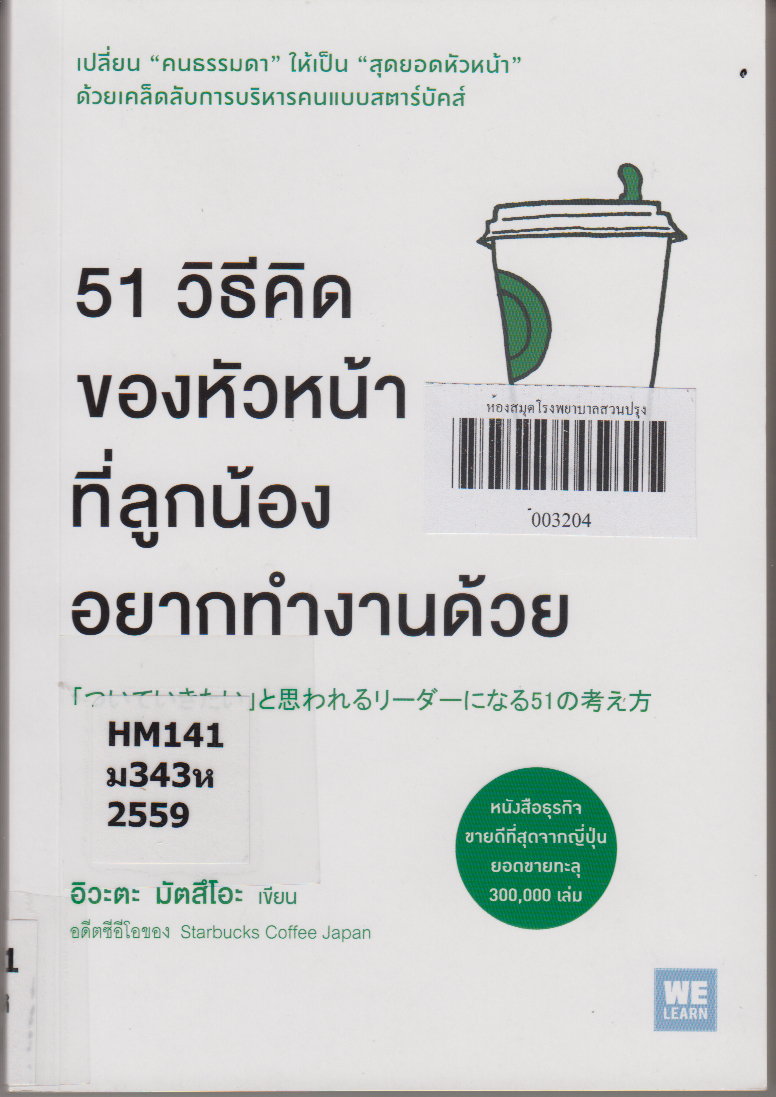 51 วิธีคิดของหัวหน้าที่ลูกน้องอยากทำงานด้วย = "Tsuiteikitai" to omowareru leader ni naru 51 no kangaekata / อิวะตะ มัตสึโอะ, ผู้เขียน ; ภาณุพันธ์ ปัญญาใจ, ผู้แปล