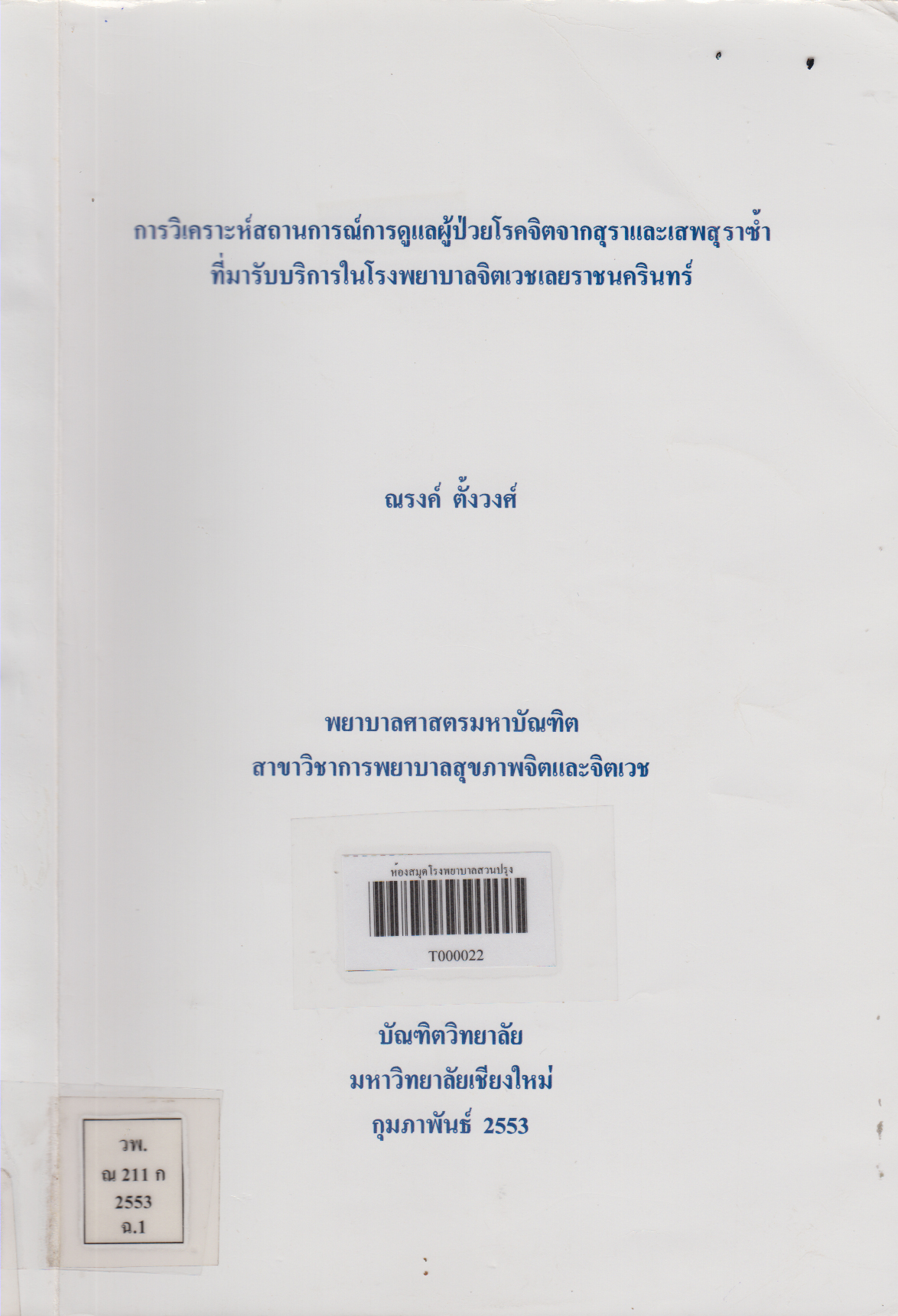 พิมพ์ลักษณ์  เชียงใหม่ : บัณฑิตวิทยาลัย มหาวิทยาลัยเชียงใหม่, 2553, [2010]