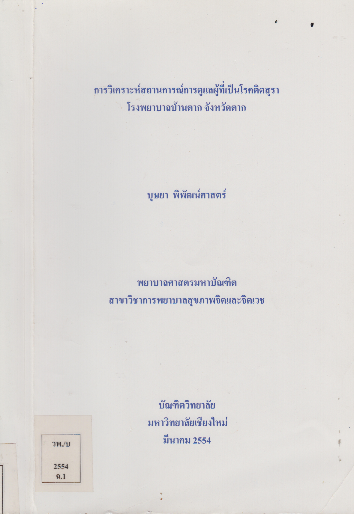 หมายเหตุ  การค้นคว้าแบบอิสระ(พยาบาลศาสตรมหาบัณฑิต(สาขาวิชาการพยาบาลจิตเวชและสุขภาพจิต)) -- มหาวิทยาลัยเชียงใหม่
