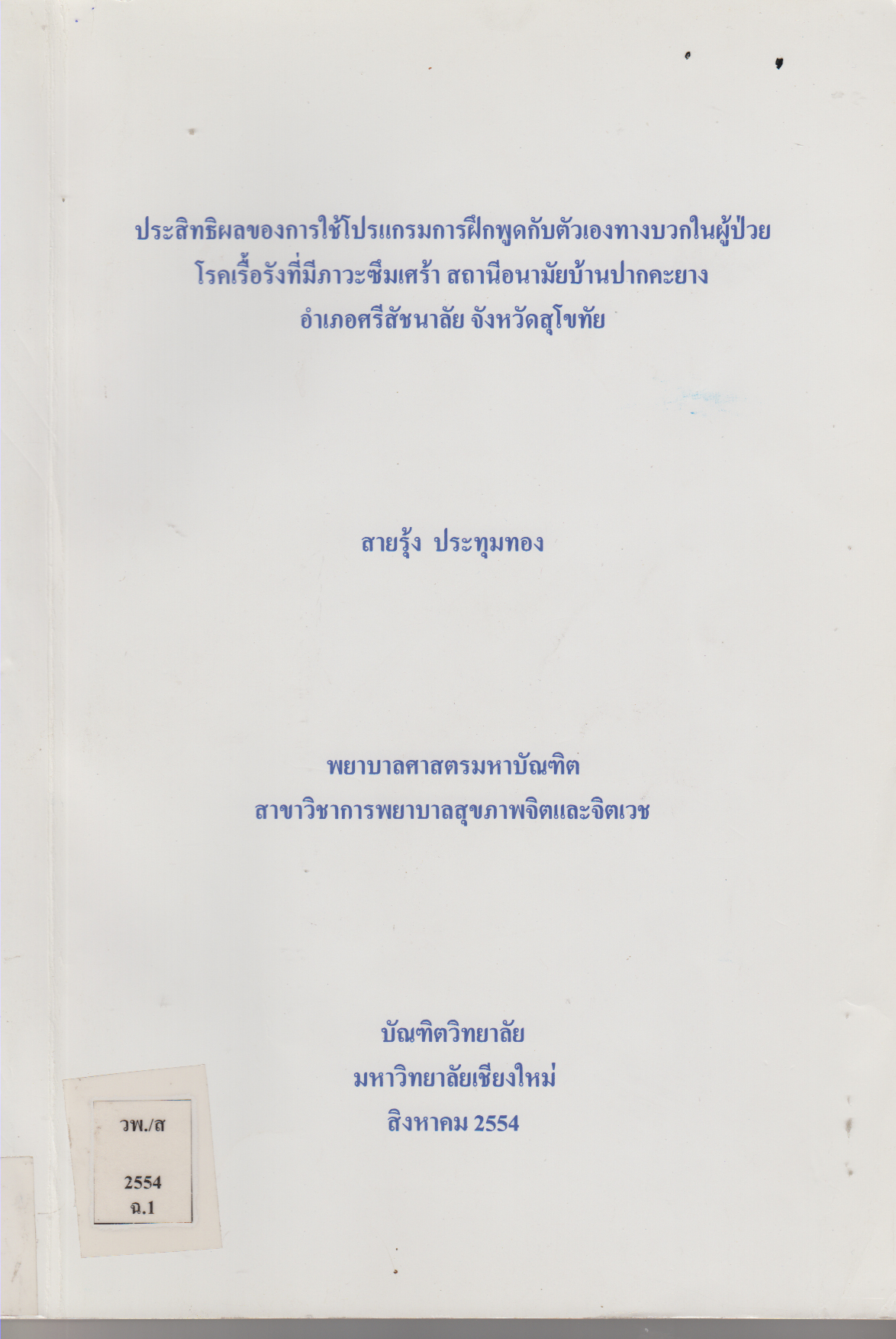 เชียงใหม่: บัณฑิตวิทยาลัย มหาวิทยาลัยเชียงใหม่, 2554,[2011] |