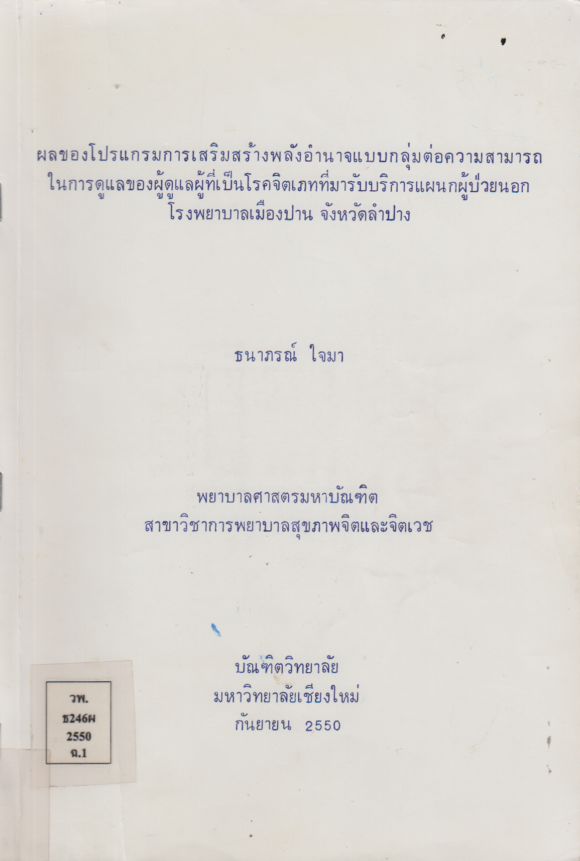 เชียงใหม่: บัณฑิตวิทยาลัย มหาวิทยาลัยเชียงใหม่, 2550,[2007] |
