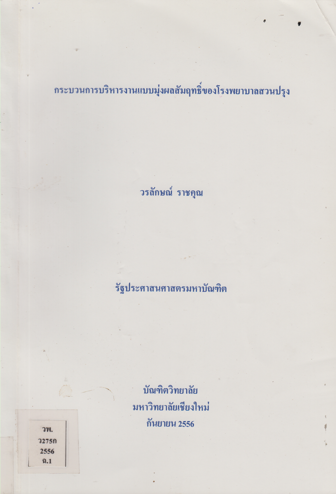เชียงใหม่: บัณฑิตวิทยาลัย มหาวิทยาลัยเชียงใหม่, 2556,[2013] |