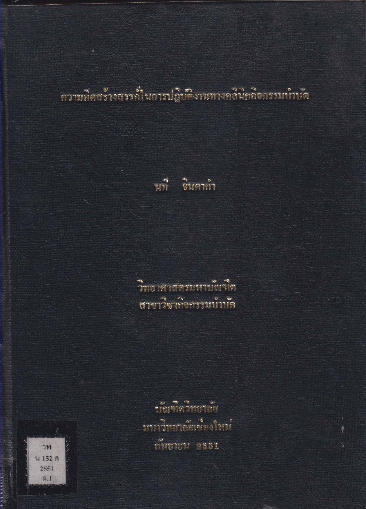 ความคิดสร้างสรรค์ในการปฏิบัติงานทางคลินิกกิจกรรมบำบัด Creativity in Occupational Therapy Clinical Practice/นที จินดาคำ |