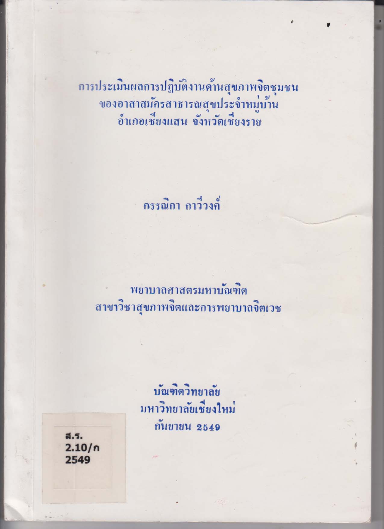 เชียงใหม่: บัณฑิตวิทยาลัย มหาวิทยาลัยเชียงใหม่, 2549,[2006] |