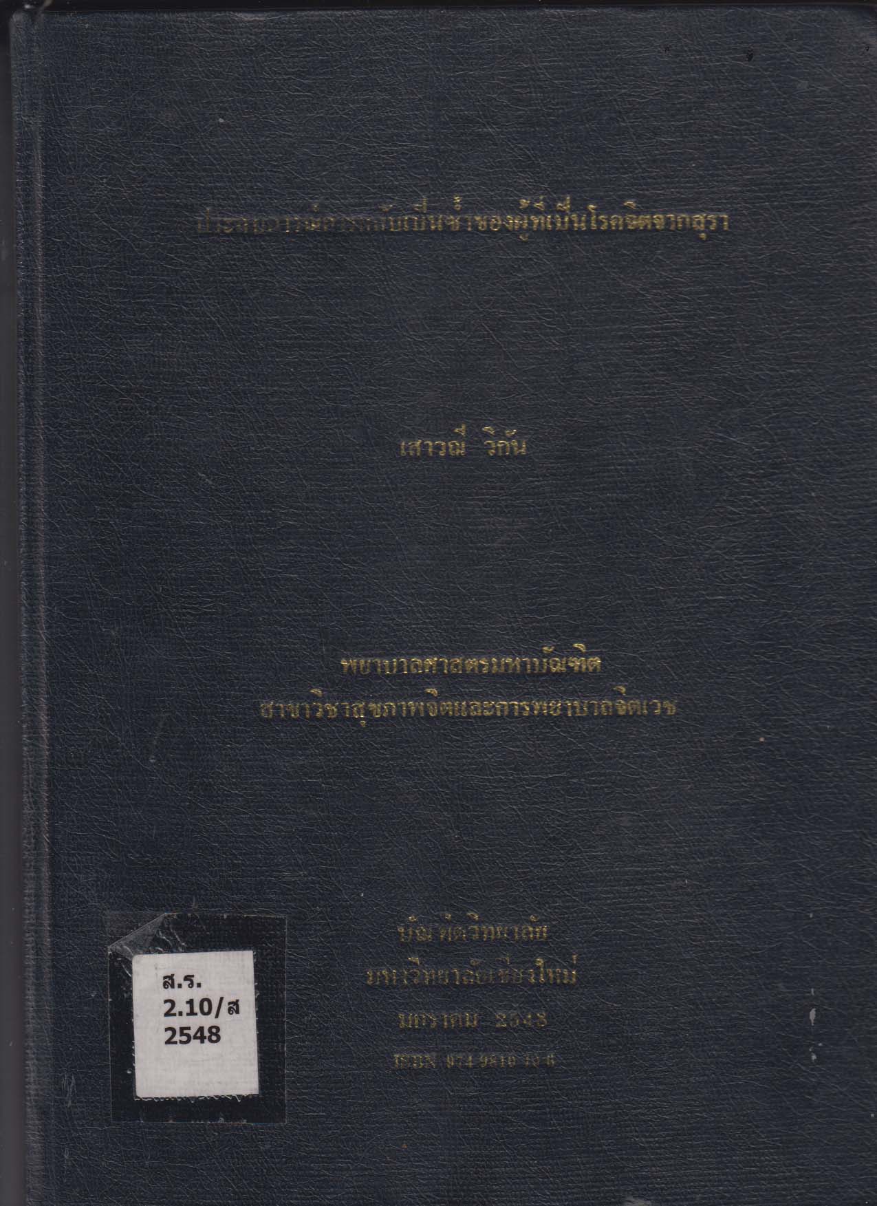 การค้นคว้าแบบอิสระ(พยาบาลศาสตรมหาบัณฑิต(สาขาวิชาการพยาบาลจิตเวชและสุขภาพจิต)) -- มหาวิทยาลัยเชียงใหม่ |