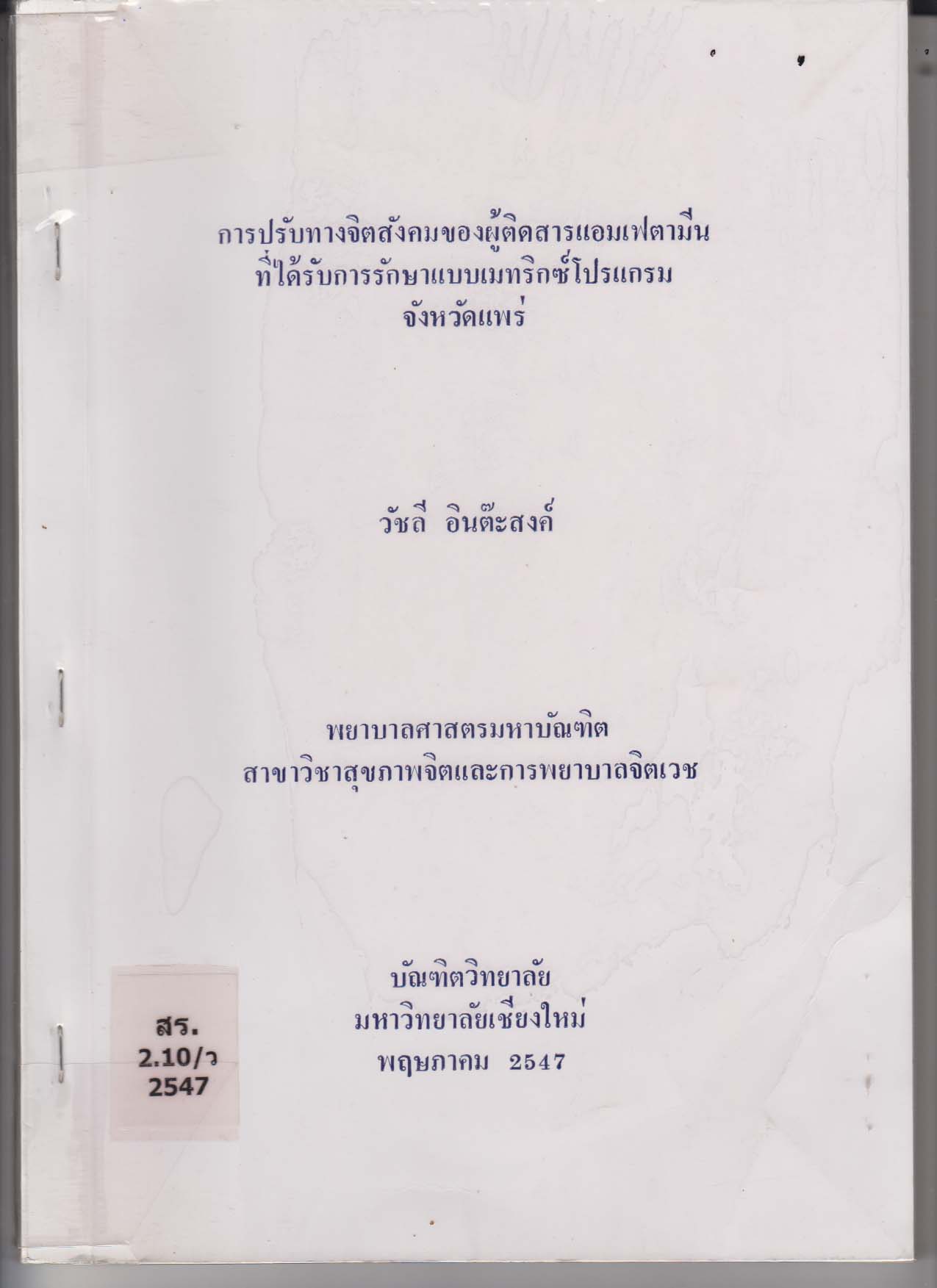 การปรับทางจิตสังคมของผู้ติดสารแอมเฟตามีนที่ได้รับการรักษาแบบเมทริกซ์โปรแกรม จังหวัดแพร่b/Psychosocial Adjustment Among Amphetamine Dependents who Received the Matrix Program in Phrae Province/วัชลี อินต๊ะสงค์ |