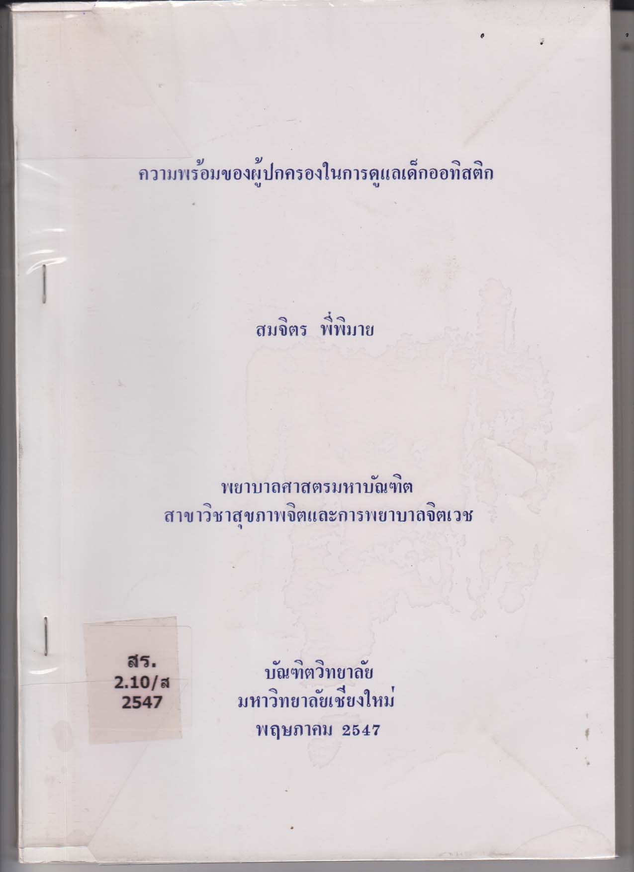 ความพร้อมของผู้ปกครองในการดูแลเด็กออทิสติก/bCaregiving Preparedness Among parents of autistic Children/สมจิตร พี่พิมาย
