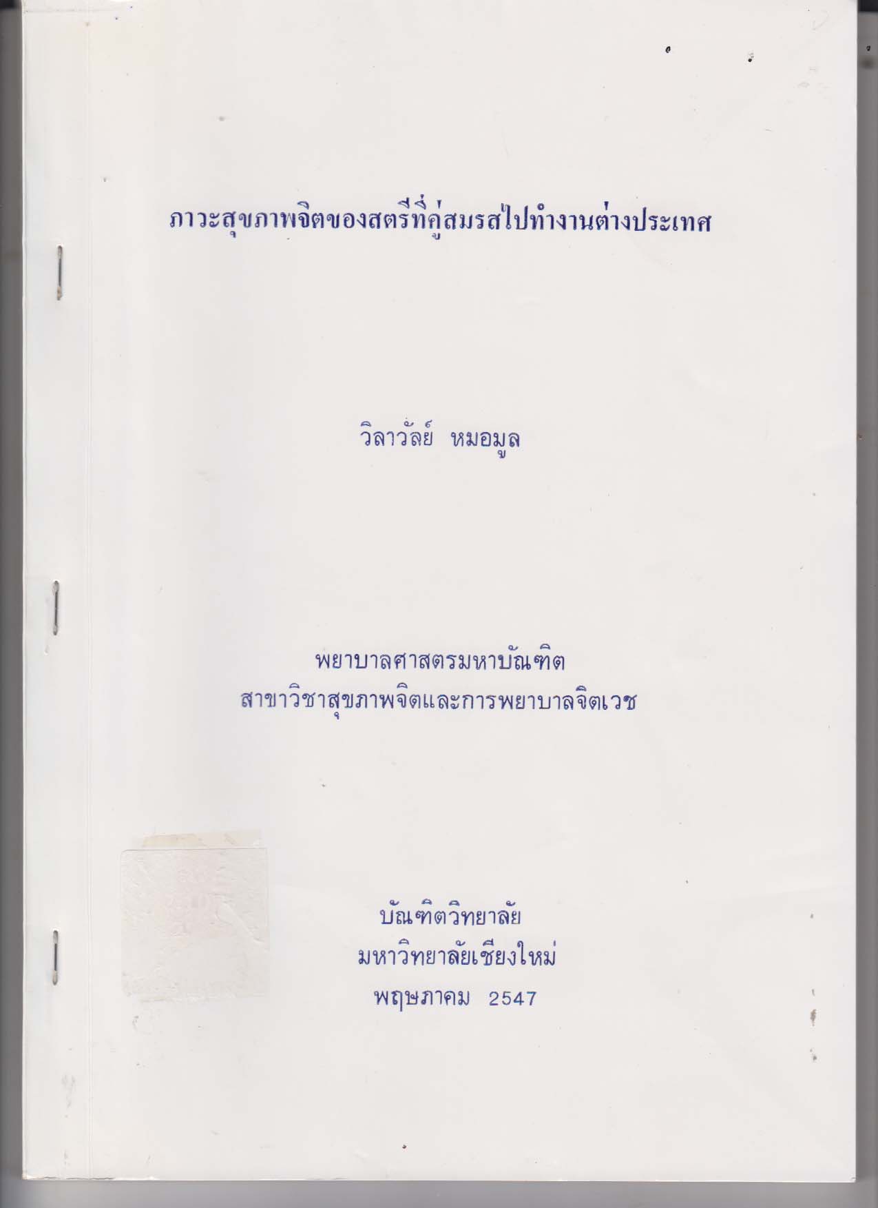 ภาวะสุขภาพจิตของสตรีที่คู่สมรสไปทำงานต่างประเทศ/bMental Health Status of Whose Whose Spouses are Working Abroad/วิลาวัลย์ หมอมูล |
