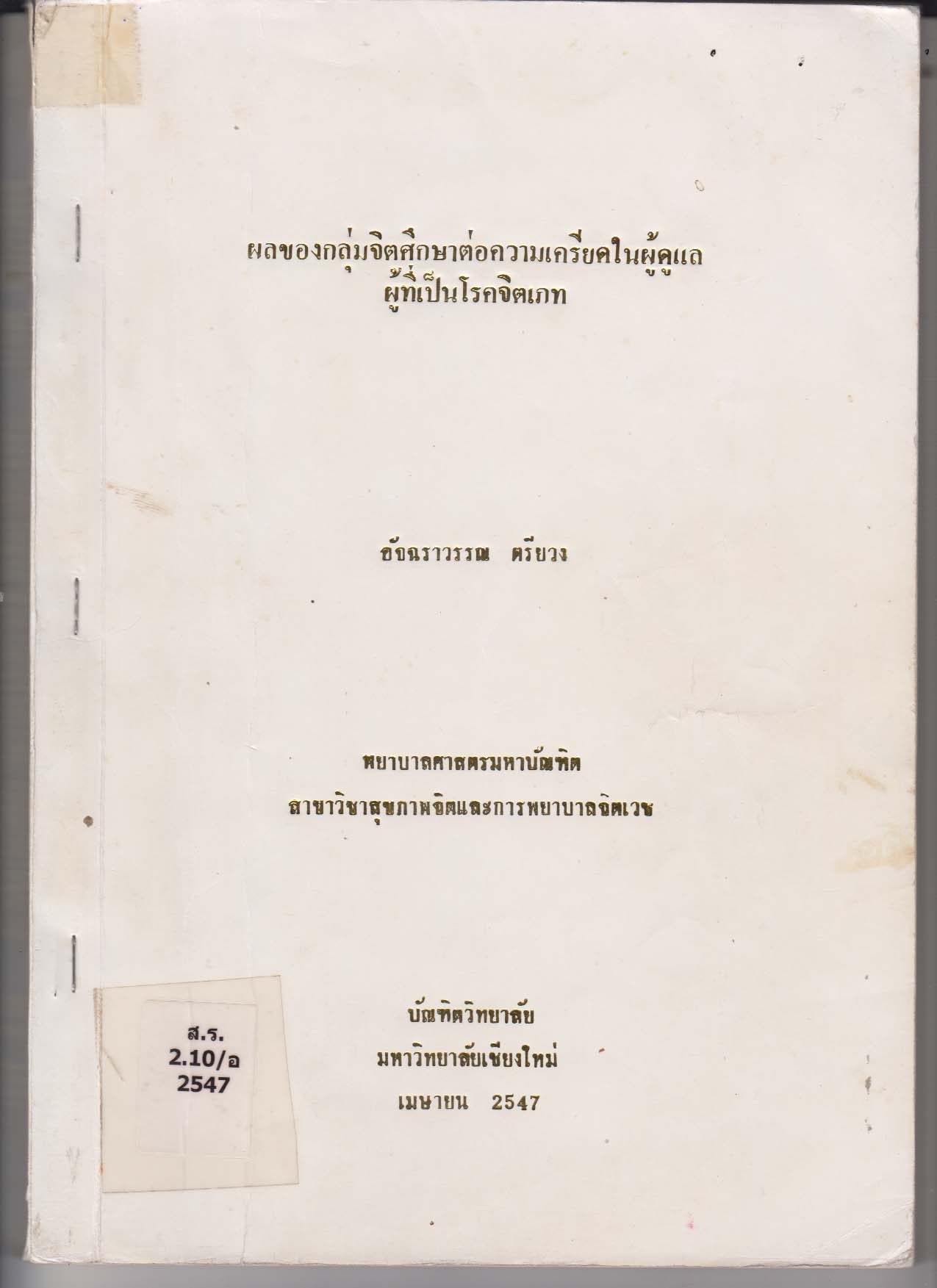 เชียงใหม่: บัณฑิตวิทยาลัย มหาวิทยาลัยเชียงใหม่, 2547,[2004] |