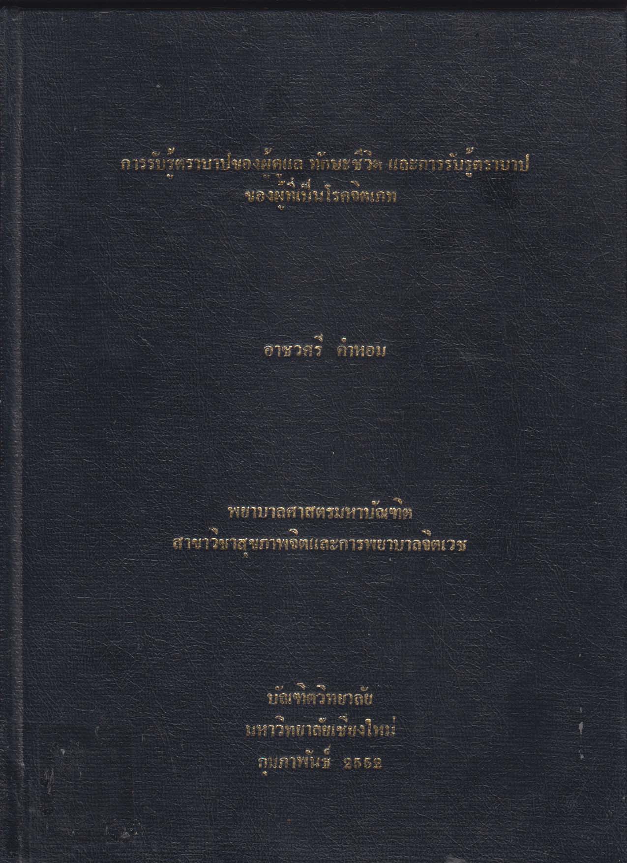 การค้นคว้าแบบอิสระ(พยาบาลศาสตรมหาบัณฑิต(สาขาวิชาการพยาบาลจิตเวชและสุขภาพจิต)) -- มหาวิทยาลัยเชียงใหม่ |