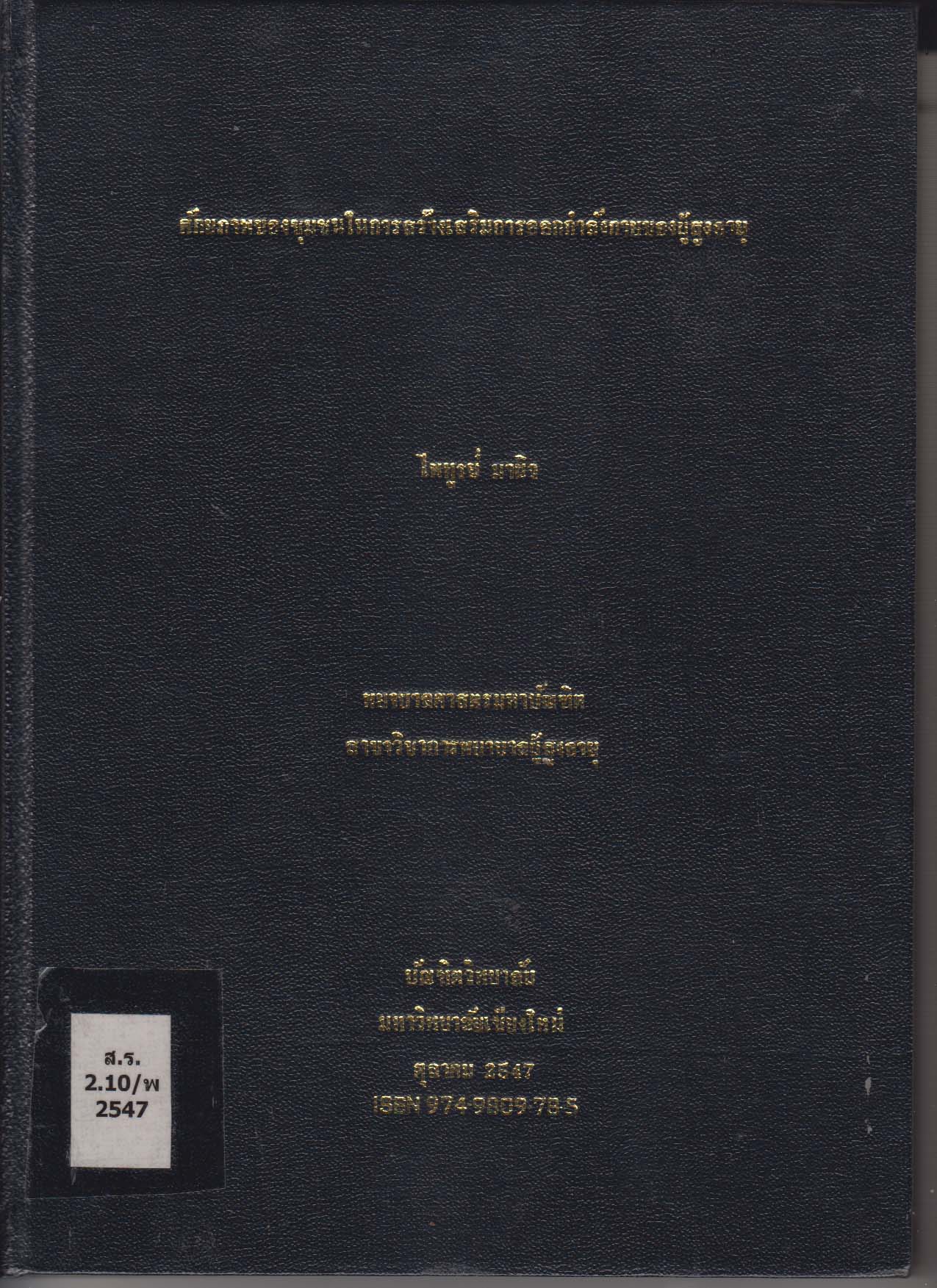 ศักยภาพของชุมชนในการสร้างเสริมการออกกำลังกายของผู้สูงอายุ/bCommunity Capacity in Promoting Exercise of the Elderly/ไพทูรย์ มาผิว |