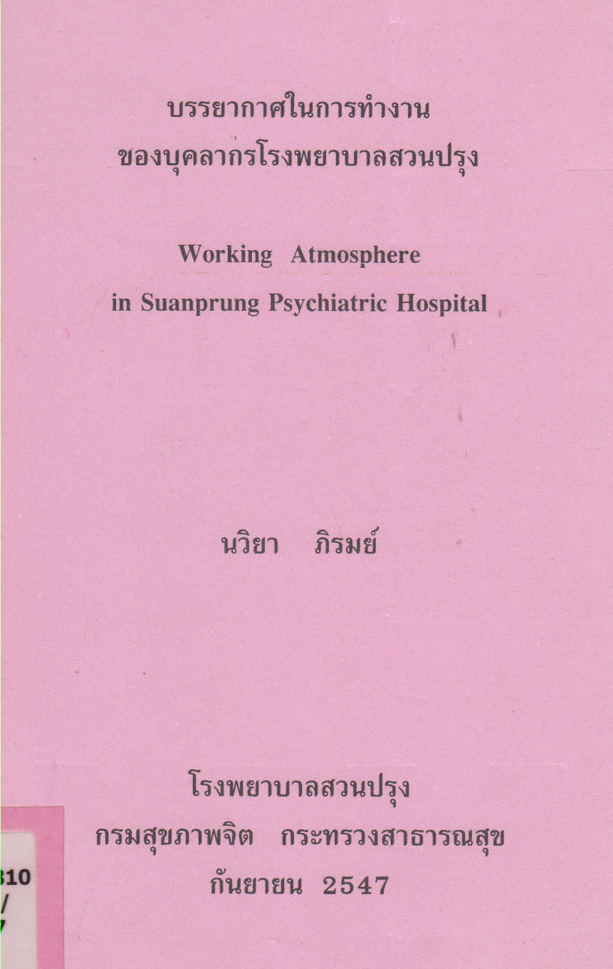 บรรยากาศในการทำงานของบุคลากรโรงพยาบาลสวนปรุง / นวิยา ภิรมย์