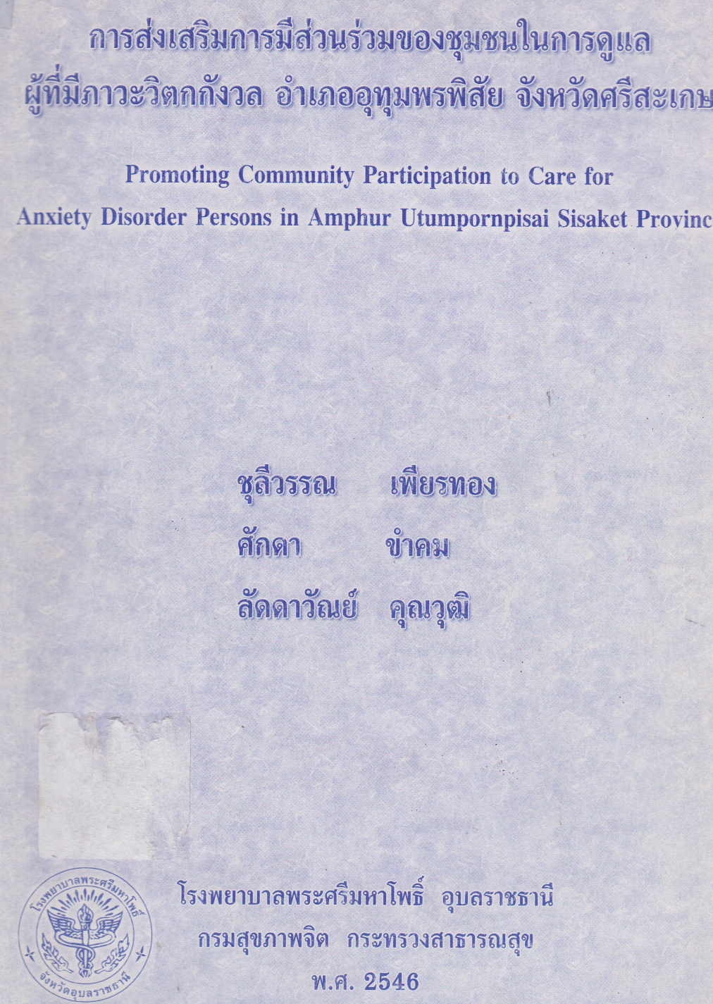 พิมพ์ลักษณ์  อุบลราชธานี : โรงพยาบาลพระศรีมหาโพธิ์ , 2546