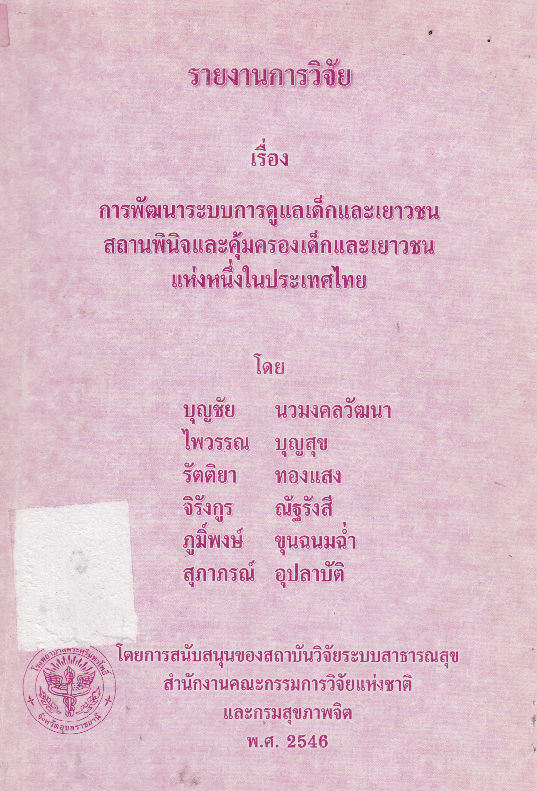 พิมพ์ลักษณ์  อุบลราชธานี : โรงพยาบาลพระศรีมหาโพธิ์ , 2546