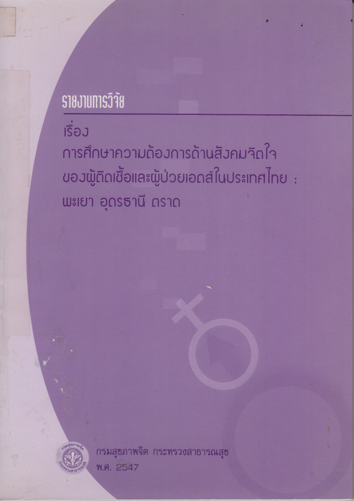 การศึกษาความต้องการด้านสังคมจิตใจของผู้ติดเชื้อและผู้ป่วยเอดส์ในประเทศไทย : พะเยา อุดรธานี ตราด สำนักพัฒนา กรมสุขภาพจิต