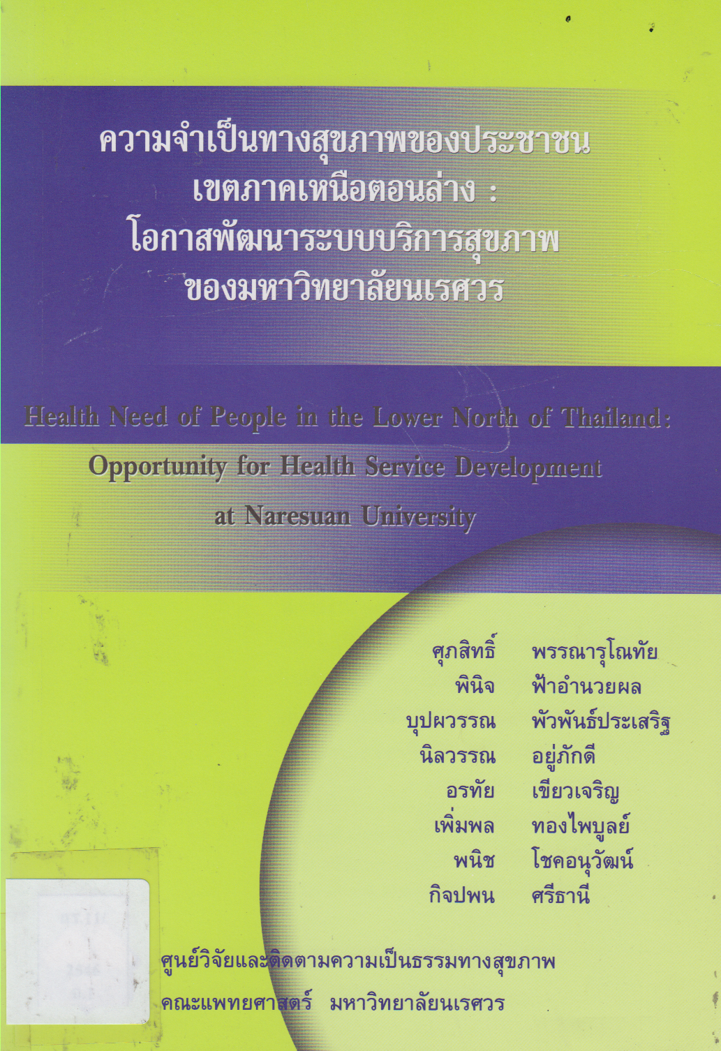 ความจำเป็นทางสุขภาพของประชาชนเขตภาคเหนือตอนล่าง : โอกาสพัฒนาระบบบริการสุขภาพของมหาวิทยาลัยนเรศวร Health need of people in the lower north of thailand:opportunity for health service development at naresuan university สุภสิทธิ์ พรรณารุโณทัย,พินิจ ฟ้าอำนวยผล,บุปผวรรณ พัวพันธ์ประเสริฐ และคณะ