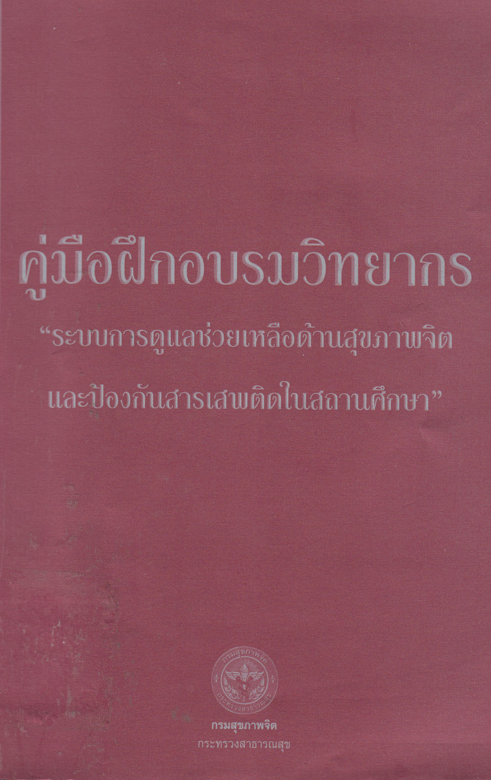 คู่มือฝึกอบรมวิทยากร"ระบบการดูแลช่วยเหลือด้านสุขภาพจิตและป้องกันสารเสพติดในสถานศึกษา" = วนิดา ชนินทยุทธวงศ์,เสาวนีย์ พัฒนอมร,อุษา พึ่งธรรม