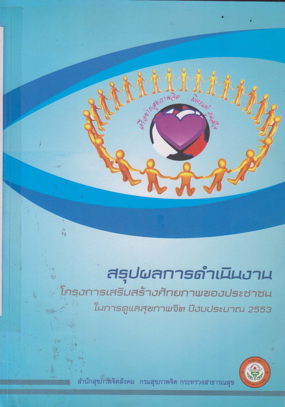 สรุปผลการดำเนินงานโครงการเสริมสร้างศักยภาพของประชาชนในการดูแลสุขภาพจิต ปีงบประมาณ 2553= /สำนักสุขภาพจิตสังคม กรมสุขภาพจิต