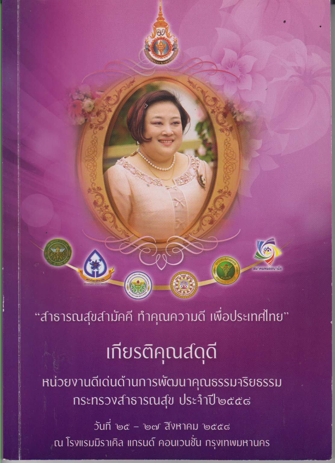 สาธารณสุขสามัคคี ทำคุณความดี เพื่อประเทศไทย เกียรติคุณสดุดี หน่วยงานดีเด่นด้านการพัฒนาคุณธรรมจริยธรรม กระทรวงสาธารณศุข ประจำปี 2558 / แก้วกัลยาสิกขาลัย สถาบันพระบรมราชชนก |