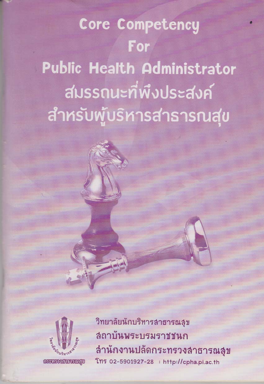 Core competency for public health administrator สมรรถนะที่พึงประสงค์ สำหรับผู้บริหารสาธารณสุข=/bวิทยาลัยนักบริหารสาธารณสุข สถาบันพระบรมราชชนก