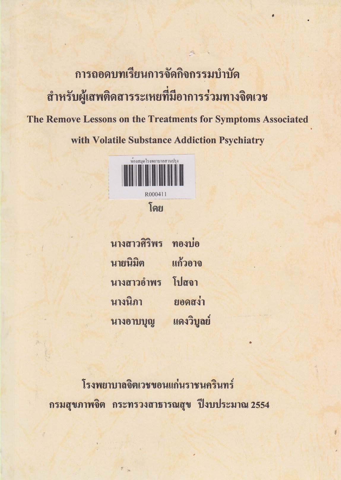 พิมพ์ลักษณ์  ขอนแก่น : โรงพยาบาลจิตเวชขอนแก่น, 2554