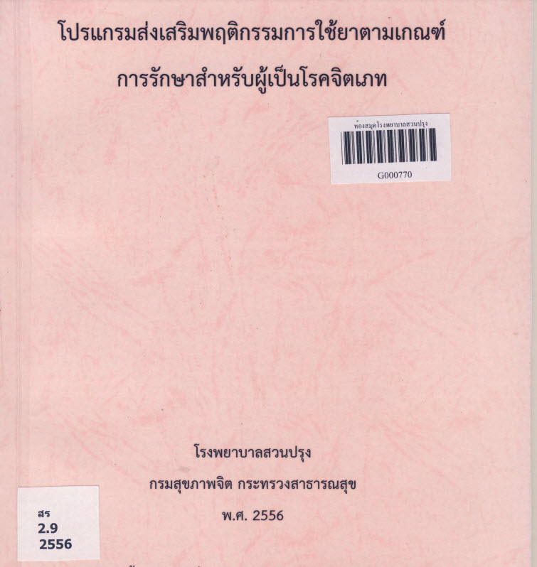 โปรแกรมส่งเสริมพฤติกรรมการใช้ยาตามเกณฑ์การรักษาสำหรับผู้เป็นโรคจิตเภท/ กลุ่มการพยาบาล โรงพยาบาลสวนปรุง |