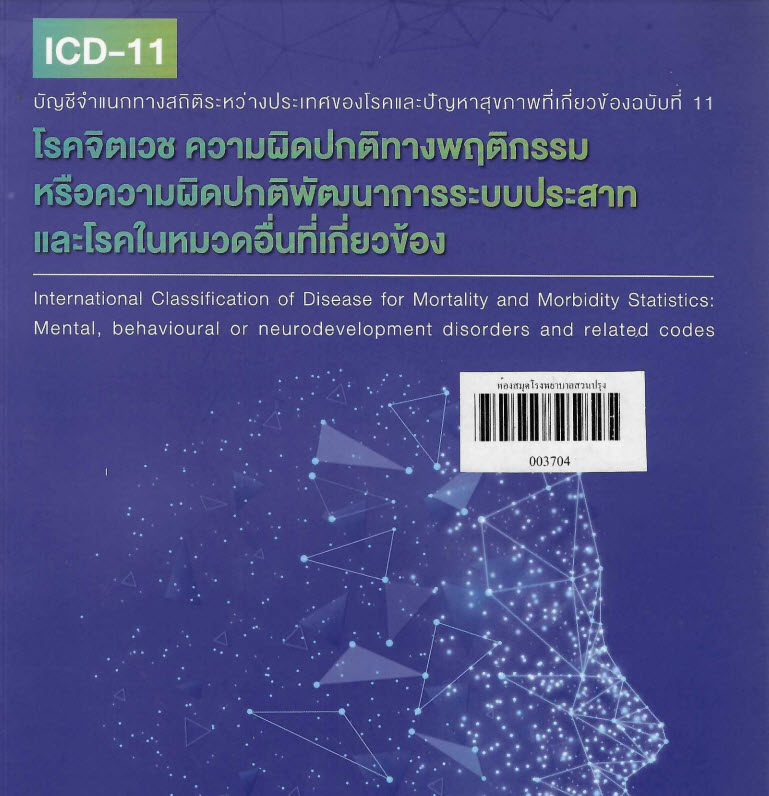 ICD-11 บัญชีจำแนกทางสถิติระหว่างประเทศของโรคและปัญหาสุขภาพที่เกี่ยวข้องฉบับที่ 11 : โรคจิตเวช ความผิดปกติทางพฤติกรรมหรือความผิดปกติพัฒนาระบบประสาทและโรคในหมวดอื่นที่เกี่ยวข้อง : International classification of disease for mortality and morbidity statistics: mental, behavioural of neurodevelopment disorders and related cades |
