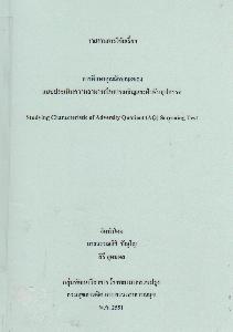 การศึกษาคุณลักษณะของแบบประเมินความสามารถในการเผชิญและฝ่าฟันอุปสรรค (Studying Characteristic of Adversity Quotient (AQ) Screening Test/ วรรณศิริ ปัญโญ,..