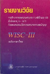 การศึกษาคะแนนความสามารถทางสติปัญญา(IQ) เด็กไทยอายุ 6 - 16 ปี ด้วยแบบทดสอบวัดความสามารถทางสติปัญญา WISC-III ฉบับภาษาไทย กาญจนา วณิชรมณีย์,ปราณี ชาญณรงค..