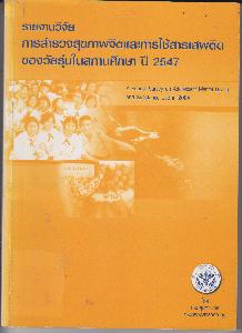 การสำรวจสุขภาพจิตและการใช้สารเสพติดของวัยรุ่นในสถานศึกษา ปี 2547(A school survey on adolescent mental health and substance use in 2004) พรเทพ ศิริวนาร..