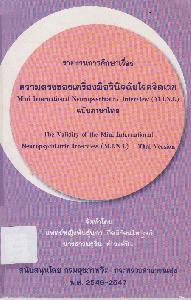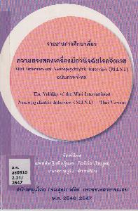 ความตรงของเครื่องมือวินิจฉัยโรคจิตเวช Mini International Neuropsychiatric Interview (M.L.N.I.)bพันธุ์นภา กิตติรัตนไพบูลย์, มธุริน คำวงศ์ปิน..