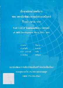 ต้นทุนต่อหน่วยบริการของ สถาบันพัฒนาการเด็กราชนครินทร์ ปีงบประมาณ 2547 Unit cost of rajanagarindra instiute of child development fiscal year 2004 สมัย ..