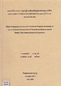 ผลของโปรแกรมการดูแลผู้ป่วยเชิงรุกในชุมชนต่อคุณภาพชีวิตและความสามารถโดยรวมของผู้ป่วยจิตเภท= Effect of assertive community treatment program on quality ..