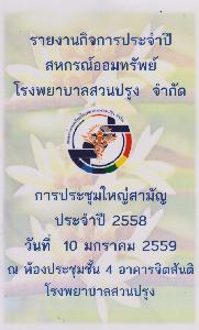 รายงานกิจการประจำปีสหกรณ์ออมทรัพย์ โรงพยาบาลสวนปรุง จำกัด (การประชุมใหญ่สามัญ ประจำปี 2558 วันที่ 10 มกราคม 2559 ณ ห้องประชุมชั้น 4 อาคารจิตสันติ โรงพ..