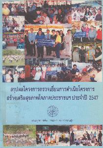 สรุปผลโครงการตรวจเยี่ยมการดำเนินงานโครงการสร้างเสริมสุขภาพใจภาคประชาชนประจำปี 2547.= กรมสุขภาพจิต..