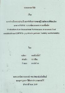 การประเมินแบบประเมินการทำกิจกรรมของผู้ป่วยจิตเวชที่ดัดแปลงมาจาก COPM: ความเที่ยงตรงและความเชื่อมั่น Evaluation of an occupational performance assessme..